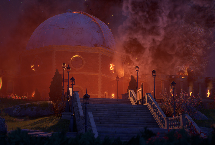Explore Caledon University, a stunning location threatened by an act of arson set to destroy everything in just three days.