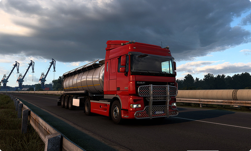 Euro Truck Simulator 2 offers an unparalleled and immersive cargo delivery simulation experience. Players are invited to sit behind the wheel of a delivery truck, hauling cargo between the biggest European cities in realistically reproduced freight carriers. The game offers a geographically accurate map, realistic physics, and a vast selection of existing trucks, with endless customization options for their interiors and exteriors. Every delivery is an adventure and an opportunity to explore Europe while developing your cargo delivery company. Euro Truck Simulator 2's base game features Austria, Belgium, the Czech Republic, the north-east of France, Germany, northern Italy, Luxembourg, the Netherlands, the west of Poland, Slovakia, Switzerland, and most of the United Kingdom, and is frequently updated with free and paid DLCs by its developer.