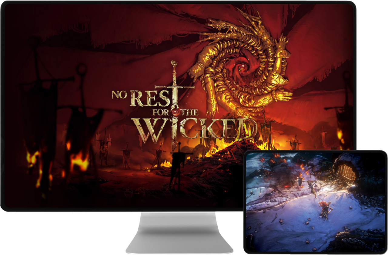 Ensure yourself an unforgettable immersion in the world of No Rest for the Wicked with Shadow PC. Discover a captivating, mature, dark universe and explore beautiful, stunning hand-crafted landscapes, villages, and dungeons with a seamless framerate, no matter what your local hardware is. Enjoy the same visceral, tense combat experience against gruesome creatures and bosses, with consistent amazing graphics and stable performance on all your screens, thanks to the cloud gaming power of Shadow PC.